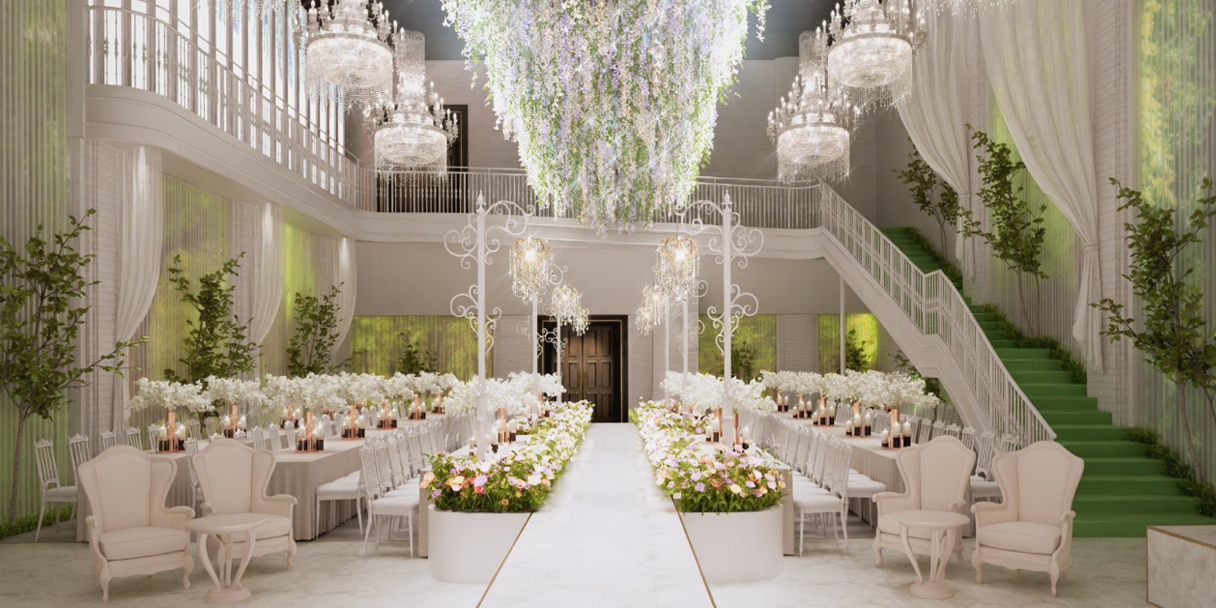 플랜테리어 스타일의 자연친화적이며 내추럴한 연출의 웨딩홀
